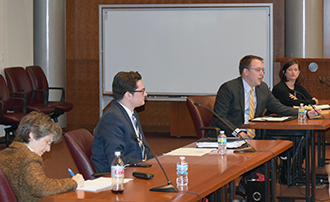 Speakers from the private and public sectors of the environmental law community shared their opinions on the current state of renewable energy sources and what the future holds for Indiana. Discussants were Andrew Wells, '10, Regulatory Counsel for Indiana Power & Light; Michael Blackwell, '13, Corporate Counsel for Midcontinent Independent Systems Operator; Professor Janet McCabe, former Assistant Administrator for the Office of Air and Radiation at the Environmental Protection Agency; and Jennifer Wasburn, '11, Counsel on Energy and Environment for the Citizens Action Coalition of Indiana.