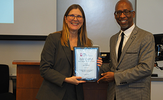 After her talk, Professor Waterhouse presented Ferraro with an “Environmental Protector Award” in recognition of her work.