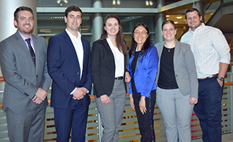 In the photo from left are Casey Wright, Joe Fehribach, Audrey Wessel, IP Center Director Professor Xuan-Thao Nguyen, Jaclyn M. Flint, and Tyler Droste.