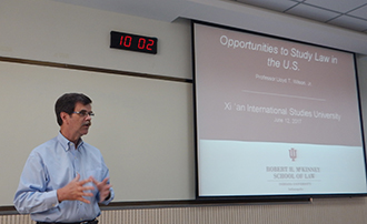 Professor Tom Wilson, Director of IU McKinney’s Joint Center for Asian Law Studies and the Chinese Law Summer Program (CLSP), made a presentation to students of Xi’an International Studies University. His topic was “Opportunities to Study Law in the U.S.” and he made the presentation while he was in China for the CLSP during Summer 2017.